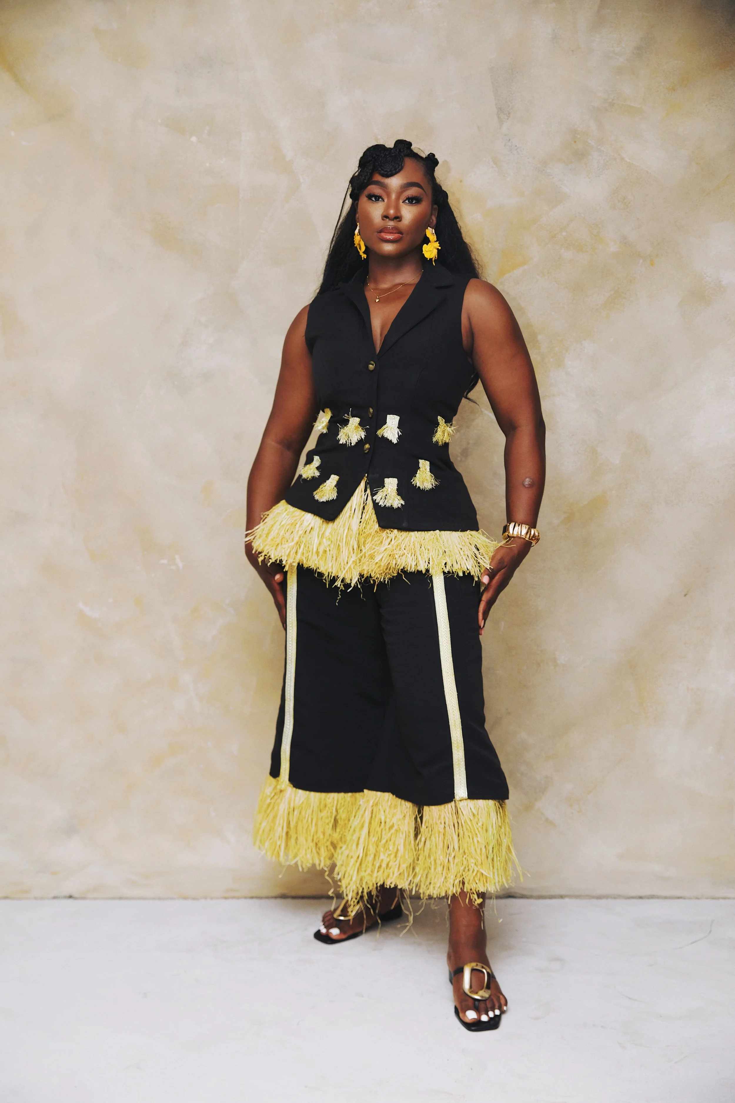 Blending heritage with modern power, the brand reimagines traditional textiles such as aso-oke, adire, raffia, and batik into bold luxury silhouettes for the contemporary global woman. Hand-finished details meet refined tailoring, while ethical production and responsible sourcing remain central to the brand’s philosophy. AjiBèkè does not simply create clothing, it creates heirlooms of strength, sisterhood, and cultural pride.